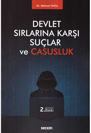 Devlet Sırlarına Karşı Suçlar ve Casusluk isimli kitapla; en ağır ceza yaptırımları ile korunan devlet sırlarına ve casusluğa ilişkin kavramlar açıklanmış, casusluğun tarihçesi, Anadolu topraklarında icra edilen casusluk faaliyetleri, Türk casusluk teşkilatları ve Türk ceza hukukunda casusluk suçuna ilişkin yapılan düzenlemeler incelenmiş, Türk Ceza Kanunu`ndaki devlet sırlarına karşı suçlar ve casusluk suçları içtihatlarla birlikte analiz edilmiş, uygulamada ortaya çıkan sorunlara değinilerek, konuyla ilgili düzenlemelerdeki eksiklik ve hatalar ile bunların düzeltilmesine yönelik çözüm önerileri sunulmuştur.