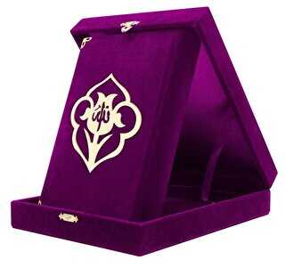 Kadife Kutulu Kur`an-ı Kerim Orta Boy, Güllü, Mor