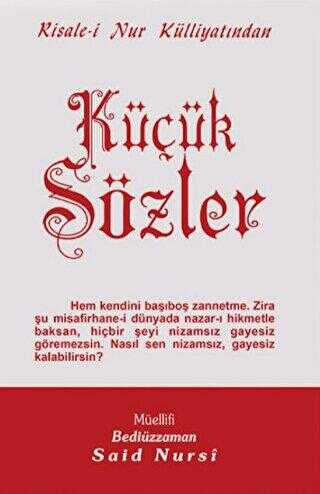 Küçük Sözler ise; yaratılış itibariyle muhtaç olduğumuz bu vazifeyi, çok âyet ve hadis-i şeriflerin mânalarını tefsir eden güzel temsillerle anlatıyor. Kulluk şuurunu ruhlara yerleştiriyor. Ruhumuzun nuru, gıdası olan namazı şevkle kıldıracak esasları ders veriyor.