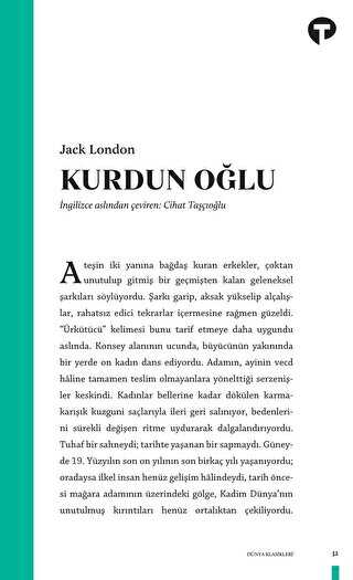Vahşetin Çağrısı, Beyaz Gölge, Martin Eden gibi romanların yazarı Jack London ilk ününü, altına hücum çağı öyküleriyle kazanmıştı. İnsanın vahşi doğada hayatta kalma mücadelesini anlatan Kurdun Oğlu bu öykülerin derlenmesinden oluşan bir kitap.