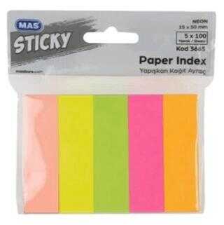 Mas 3665 Yapışkanlı İndex Kağıdı 15X50mm 5X100 Yaprak Ürün Açıklaması