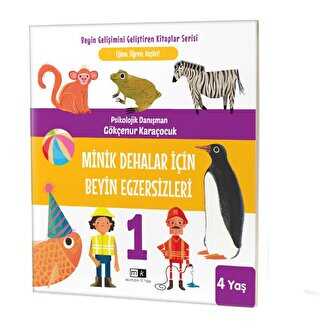 4 yaş ^^Minik Dehalar İçin Beyin Egzersizleri^^ adlı bu kitapta çocukların sağ beyin – sol beyin gelişimlerini göz önünde bulundurarak oluşturulan destekleyici etkinliklere yer verilmiştir. Kitap hazırlanırken çocuklara yönelik uluslararası ve ulusal gelişim envanterlerini göz önünde bulundurmuştur.