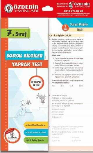 7. Sınıf Sosyal Bilgiler Yaprak Test Ürün Açıklaması