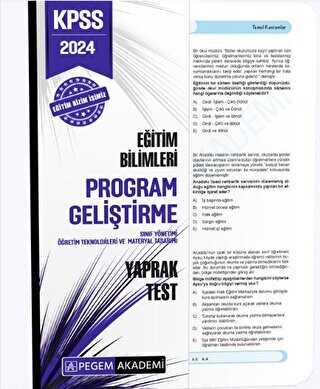 Pegem Akademi Yayıncılık 2024 KPSS Eğitim Bilimleri Program Geliştirme Yaprak Test Hakkında Bilgiler