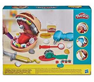 İçindekiler: hasta, dolgu aleti, tel silindiri, diş kalıbı, diş fırçası, şırınga aleti, ayna, sond, diş ipi, plastik cımbız ve 8 kutu Play-Doh Oyun Hamuru (toplam net ağırlık 454 gr).