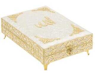 Gelince Haber VerSema Serisi Kadife Kaplamalı Ahşap Plaket Kutu + Orta Boy Arapça Kadife Kuran + Taşıma Çantası Hediye Seti Krem (90246)