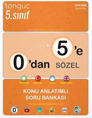 Elindeki bu kitap 5. sınıfta karşına çıkacak Türkçe, Sosyal Bilgiler, Din Kültürü ve Ahlak Bilgisi ile İngilizce derslerine ait tüm konuları sıfırdan başlayarak sana anlatmayı amaçlıyor. 0’dan 5’e Sözel Konu Anlatımlı Soru Bankası’nın sol sayfalarında 5. Sınıf müfredatına ve yeni sınav sistemine uygun T&uum