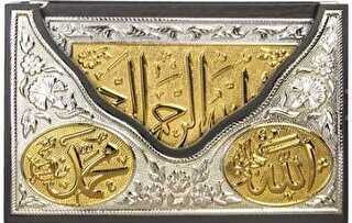 Kur`an Cildi: Suni deri üzeri Yaldızlı Gümüş Nikel karışımlı levha